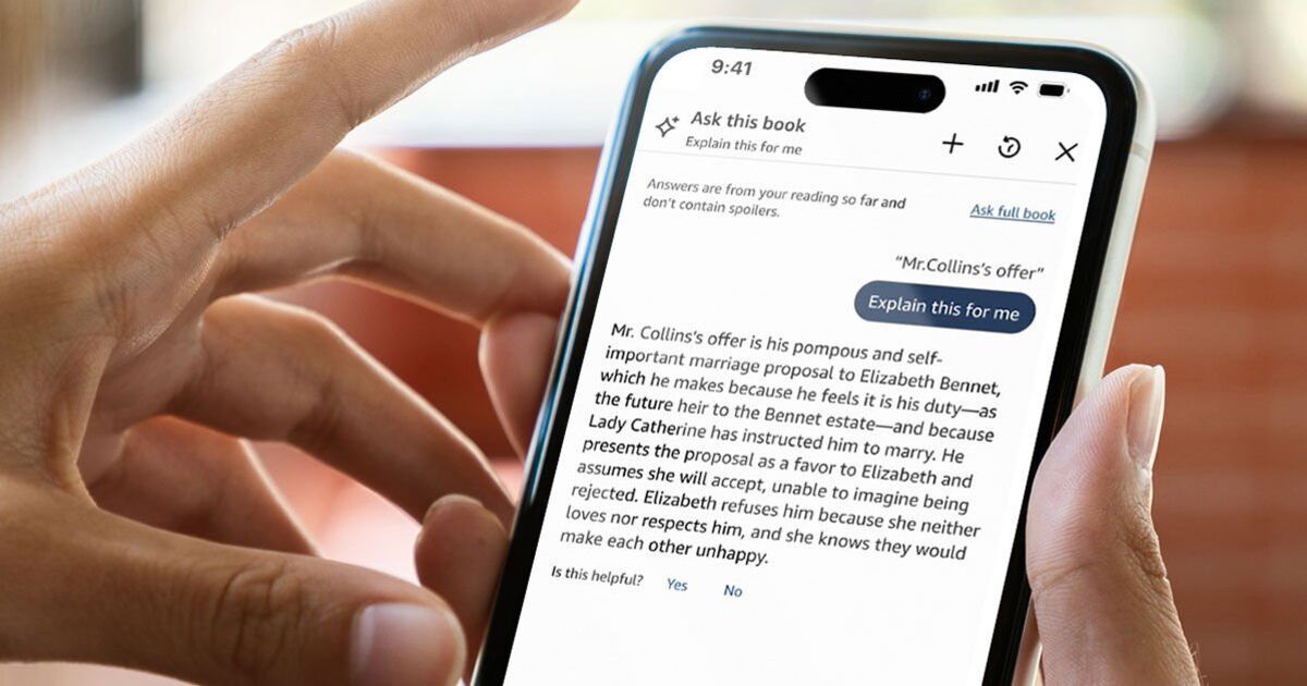 A Amazon anunciou uma atualização para o aplicativo Kindle para iOS (iPhone e iPad) que apresenta uma nova ferramenta de software chamada ‘Ask this Book’, que promete “respostas instantâneas e sem spoilers para perguntas sobre seus livros”, de acordo com a Amazon.
