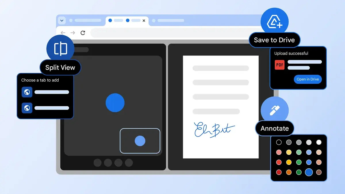 O segundo novo recurso é para seus documentos PDF. O visualizador de PDF do Chrome finalmente possui uma ferramenta de anotações. Anteriormente, era necessário baixar um PDF e abrir um aplicativo separado para fazer alterações. Agora você pode marcar documentos, fazer anotações e adicionar sua assinatura, tudo no navegador.