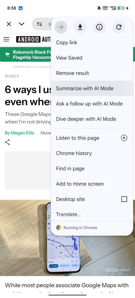 É importante notar que essas opções do modo AI estão disponíveis apenas no Google app e não se estendem a outros aplicativos que usam as guias personalizadas do Chrome. No entanto, isso pode ser útil se você quiser um resumo rápido do artigo ou uma análise detalhada sem realmente mudar para o modo AI ou Gemini.