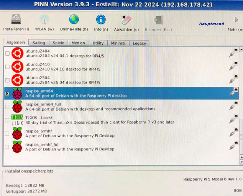 Você pode então instalar os sistemas operacionais desejados para o Raspberry Pi usando PINN.