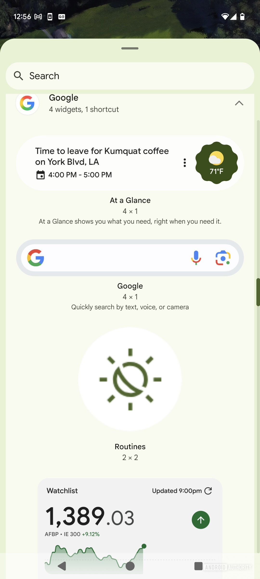 Embora certamente possa ser mais completo, essa ainda era uma boa opção de se ter, e é por isso que estamos um pouco preocupados em ver o Google tirá-lo. Enquanto examinamos a versão beta mais recente do Google App para Android, notamos que onde o aplicativo costumava oferecer quatro widgets e um atalho, essa contagem caiu para três – e é o widget de rotinas que não faz o corte.