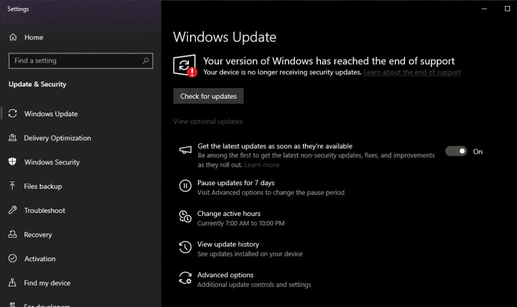 Antes de ativar o ESU, certifique-se de que todas as atualizações estejam instaladas no PC e que a mensagem “Sua versão do Windows não é mais suportada” apareça nas configurações do Windows Update.