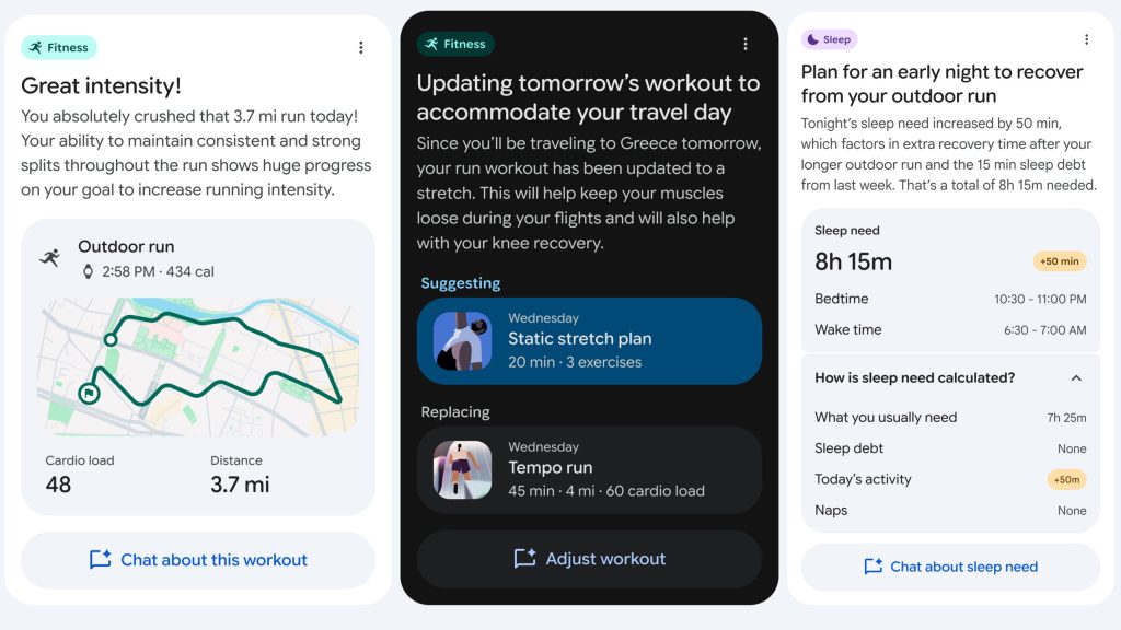 À primeira vista, o novo treinador pessoal de IA é o destaque da atualização mais recente. Em vez de entregar aos usuários uma pilha de dados, ele oferece planos de condicionamento físico que mudam de acordo com os dados que coleta. Esses planos levam em consideração os objetivos, histórico e hábitos exclusivos de cada usuário, ajustando com o tempo. O treinador também analisa os dados do sono para fornecer informações detalhadas e personalizadas e horários adaptativos. Começar a dormir melhor? Seu plano de recuperação mudará. Cair na sua sequência de treinos? O treinador pode sugerir sessões mais gentis até você voltar aos trilhos.