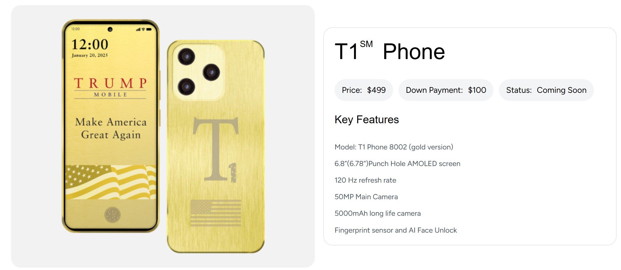Enquanto isso, se os funcionários da Trump Mobile forem acreditados, o lançamento do telefone T1 foi bastante bem -sucedido. O relatório observa que o formulário de pedidos on -line do telefone caiu logo depois de ir ao ar na segunda -feira e um funcionário da empresa atribuiu o acidente à demanda esmagadora pelo dispositivo. Verificamos e o formulário de pedido para o telefone T1 agora está novamente on-line, permitindo que os clientes encomendassem o aparelho, autorizando um pagamento de US $ 100 antecipadamente e pré-autorizando um pagamento de US $ 399 mais impostos quando o dispositivo é enviado.