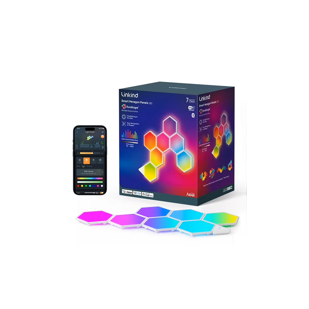 Os painéis de hexagon inteligente EP6 Linkind são uma maneira acessível de adicionar uma iluminação decorativa de forma decorativa brilhante e vibrante a qualquer espaço.